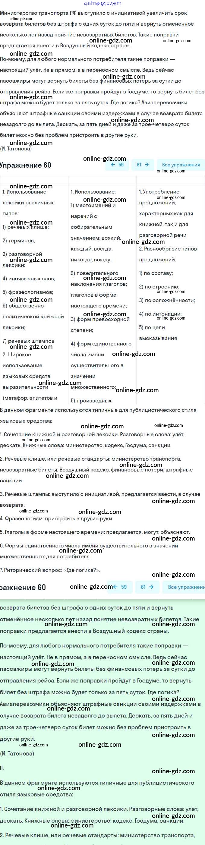 Готовые домашние задания по Русскому языку за 8 класс Учебник Рыбченкова, Александрова 2015 - Упражнения 60