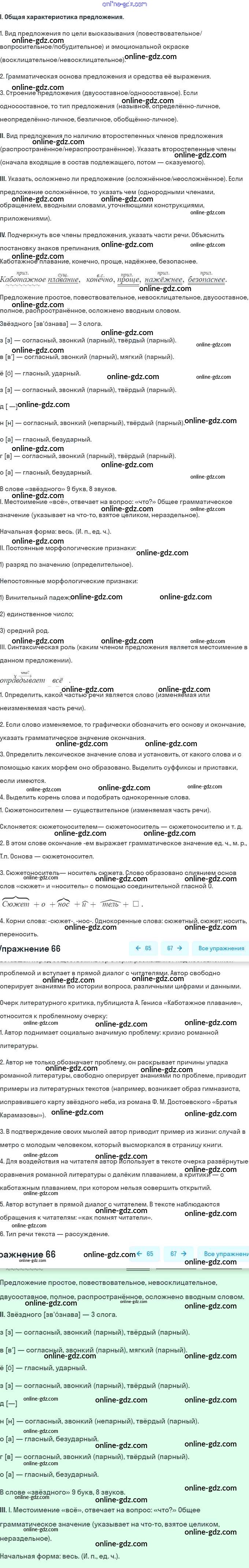 Готовые домашние задания по Русскому языку за 8 класс Учебник Рыбченкова, Александрова 2015 - Упражнения 66