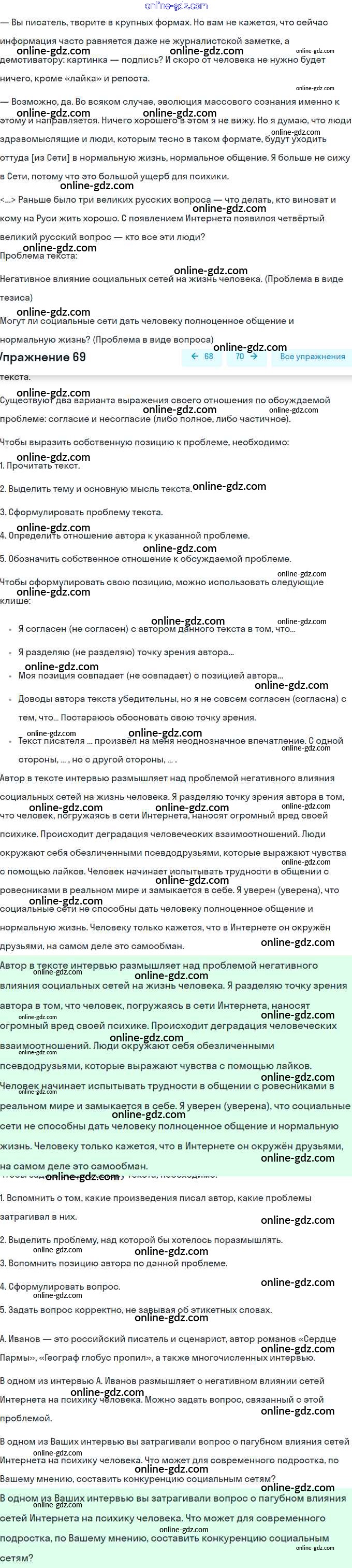 Готовые домашние задания по Русскому языку за 8 класс Учебник Рыбченкова, Александрова 2015 - Упражнения 69