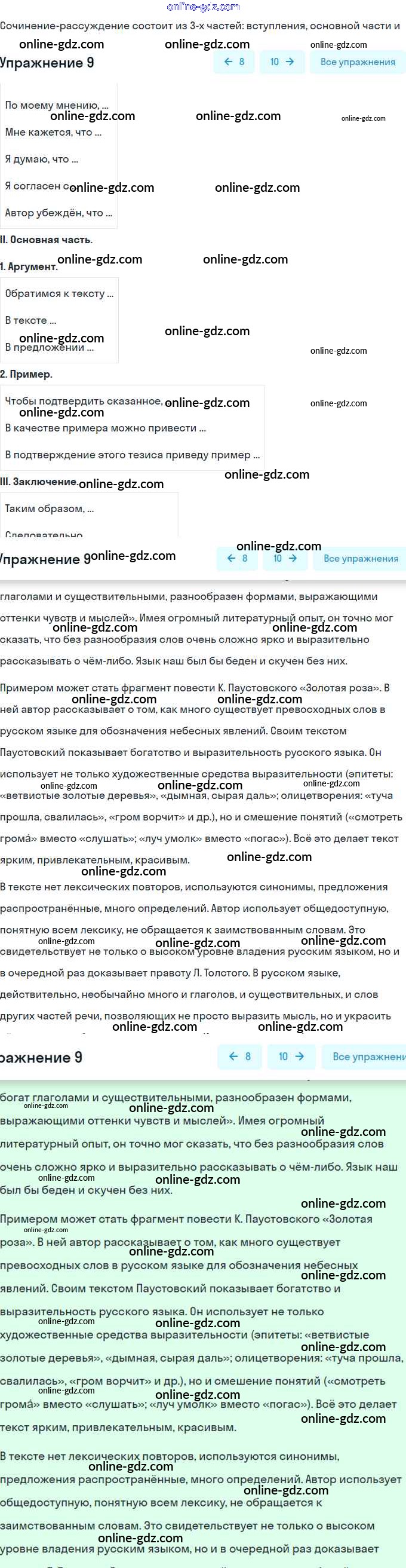 Готовые домашние задания по Русскому языку за 8 класс Учебник Рыбченкова, Александрова 2015 - Упражнения 9