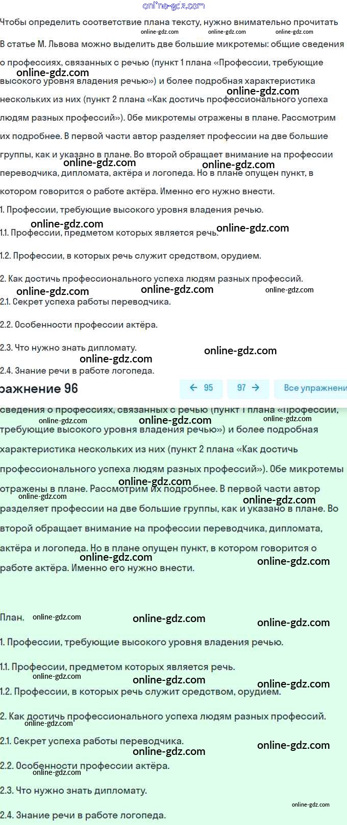 Готовые домашние задания по Русскому языку за 8 класс Учебник Рыбченкова, Александрова 2015 - Упражнения 96