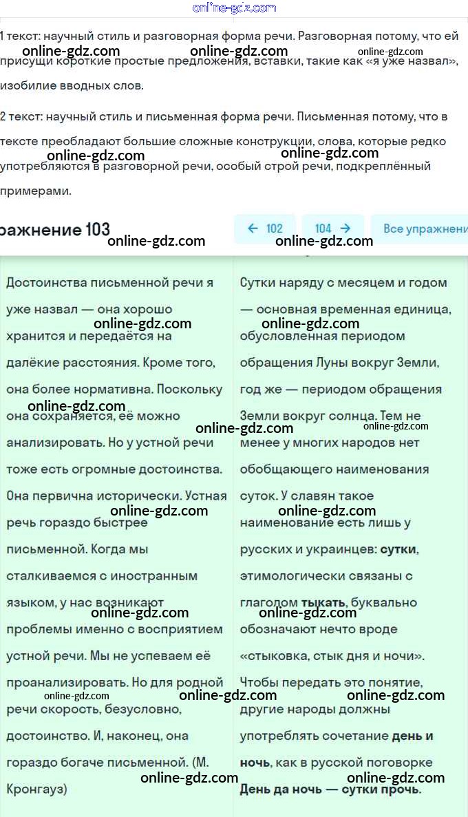 Готовые домашние задания по Русскому языку за 8 класс Учебник Шмелёв, Флоренская Алгоритм успеха 2019 - Глава 1. Русский язык в современном мире 103