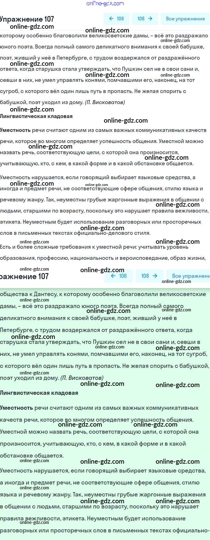 Готовые домашние задания по Русскому языку за 8 класс Учебник Шмелёв, Флоренская Алгоритм успеха 2019 - Глава 1. Русский язык в современном мире 107