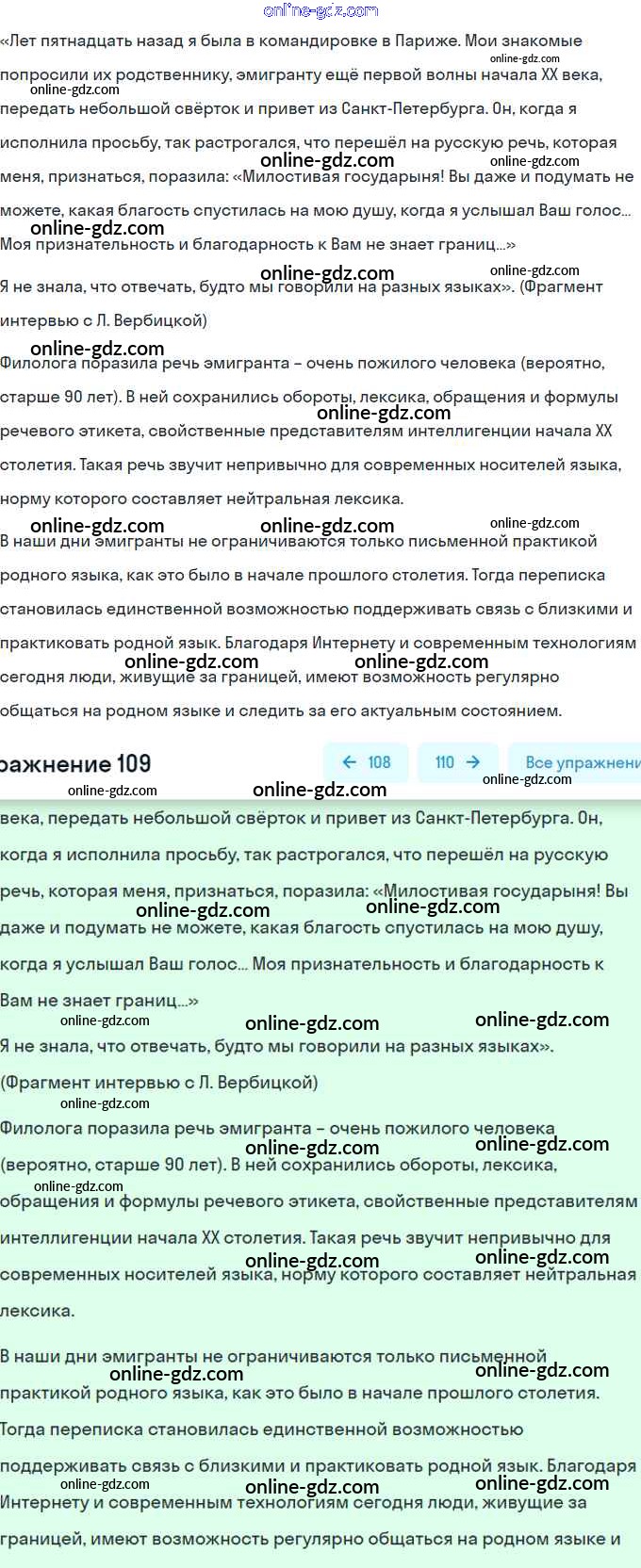Готовые домашние задания по Русскому языку за 8 класс Учебник Шмелёв, Флоренская Алгоритм успеха 2019 - Глава 1. Русский язык в современном мире 109