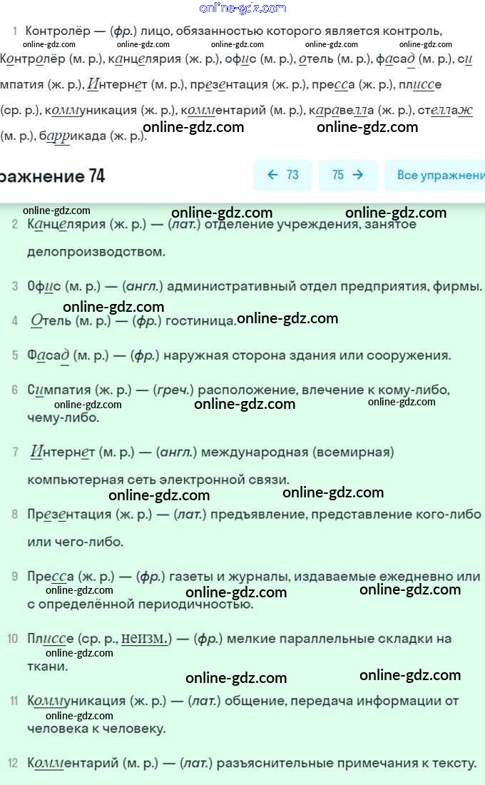 Готовые домашние задания по Русскому языку за 8 класс Учебник Шмелёв, Флоренская Алгоритм успеха 2019 - Глава 1. Русский язык в современном мире 74