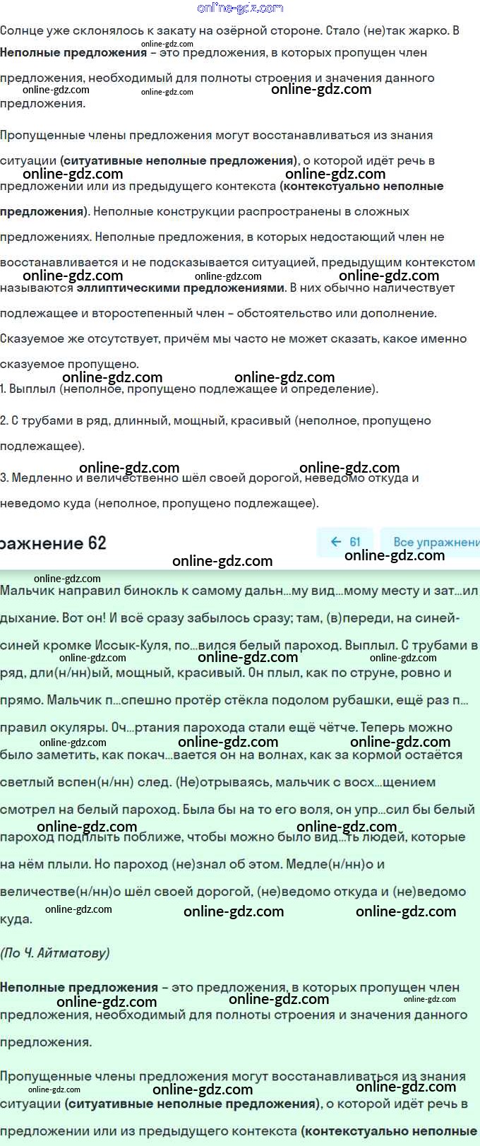 Готовые домашние задания по Русскому языку за 8 класс Учебник Шмелёв, Флоренская Алгоритм успеха 2019 - Глава 2. Межкультурная коммуникация 62