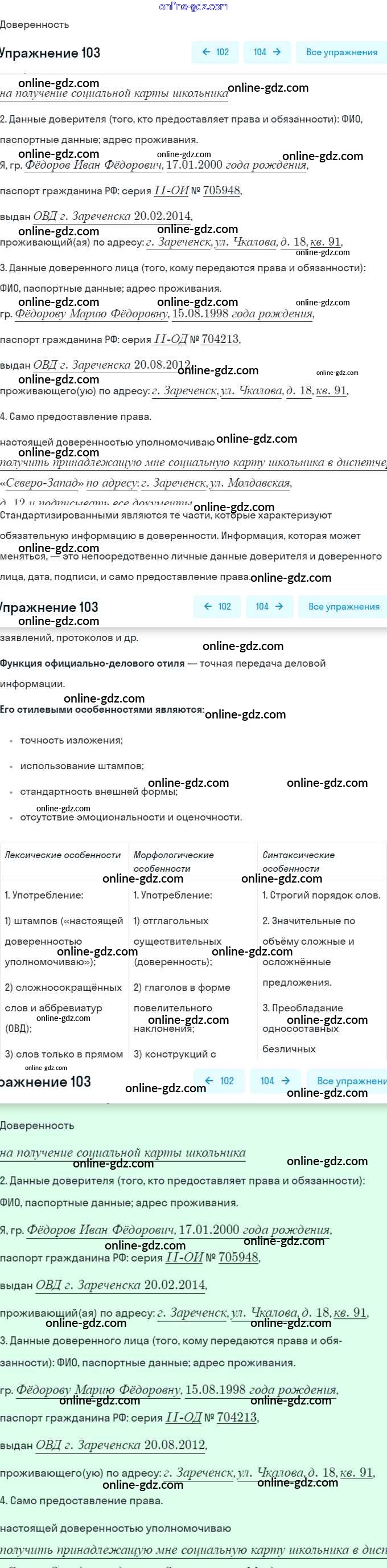 Готовые домашние задания по Русскому языку за 8 класс Учебник Шмелёв, Флоренская Алгоритм успеха 2019 - Глава 3. Роль русского языка в Российской Федерации 103