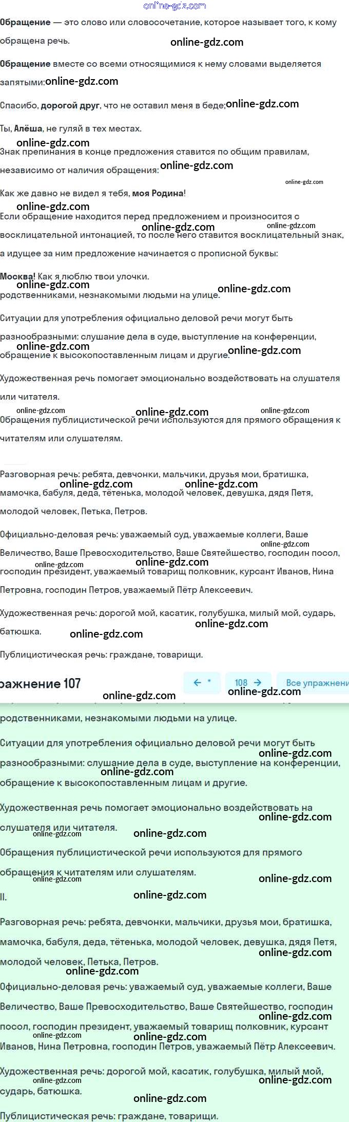 Готовые домашние задания по Русскому языку за 8 класс Учебник Шмелёв, Флоренская Алгоритм успеха 2019 - Глава 3. Роль русского языка в Российской Федерации 107