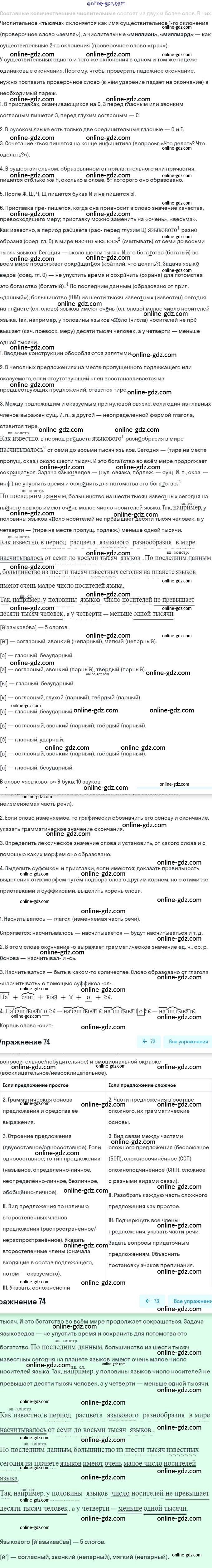 Готовые домашние задания по Русскому языку за 8 класс Учебник Шмелёв, Флоренская Алгоритм успеха 2019 - Глава 3. Роль русского языка в Российской Федерации 74