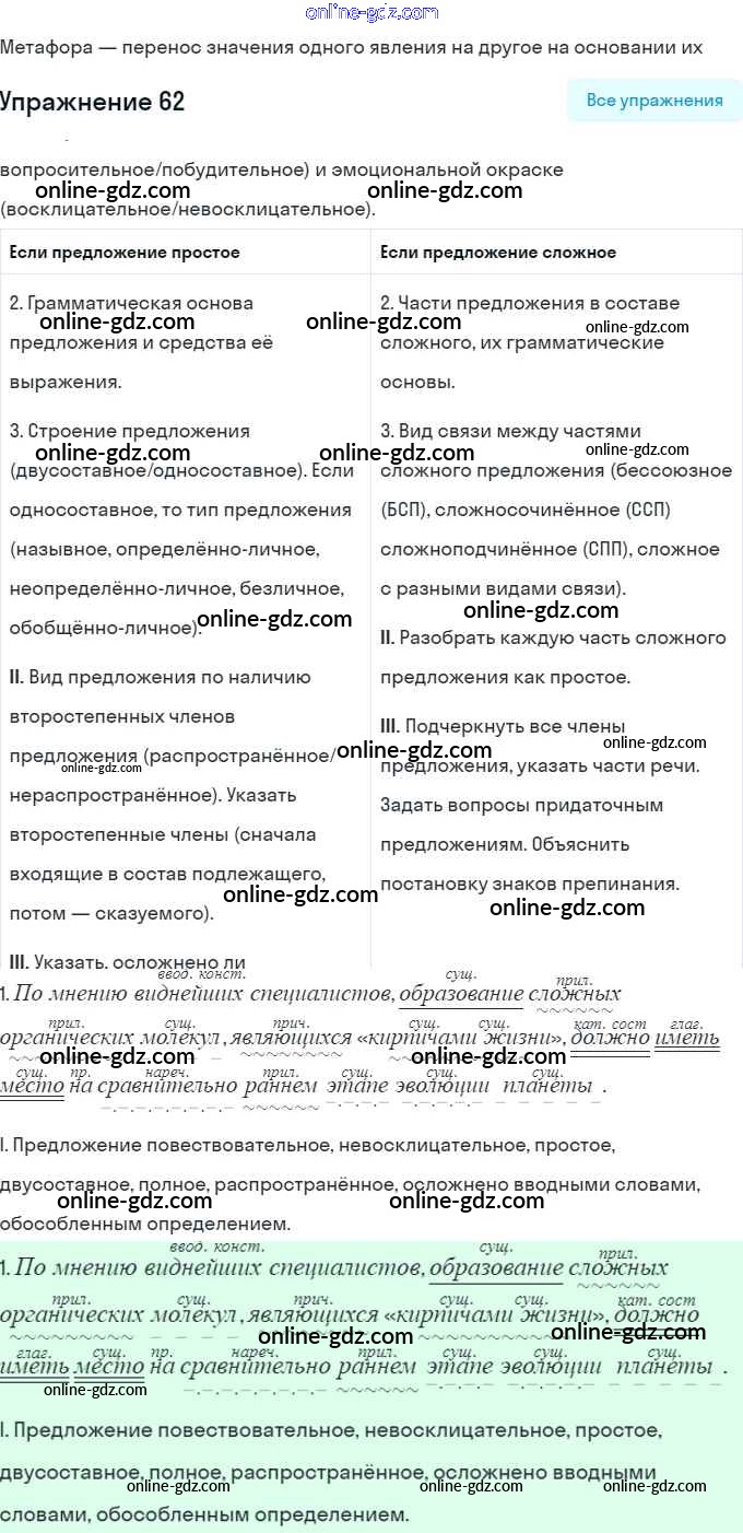 Готовые домашние задания по Русскому языку за 8 класс Учебник Шмелёв, Флоренская Алгоритм успеха 2019 - Глава 4. Русский язык — мировой язык 62