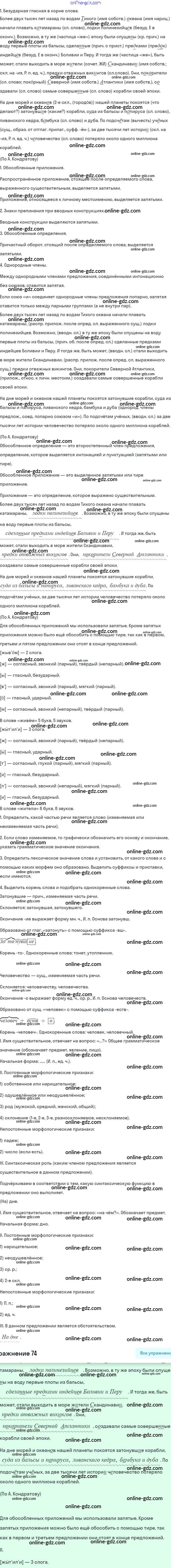 Готовые домашние задания по Русскому языку за 8 класс Учебник Шмелёв, Флоренская Алгоритм успеха 2019 - Глава 4. Русский язык — мировой язык 74