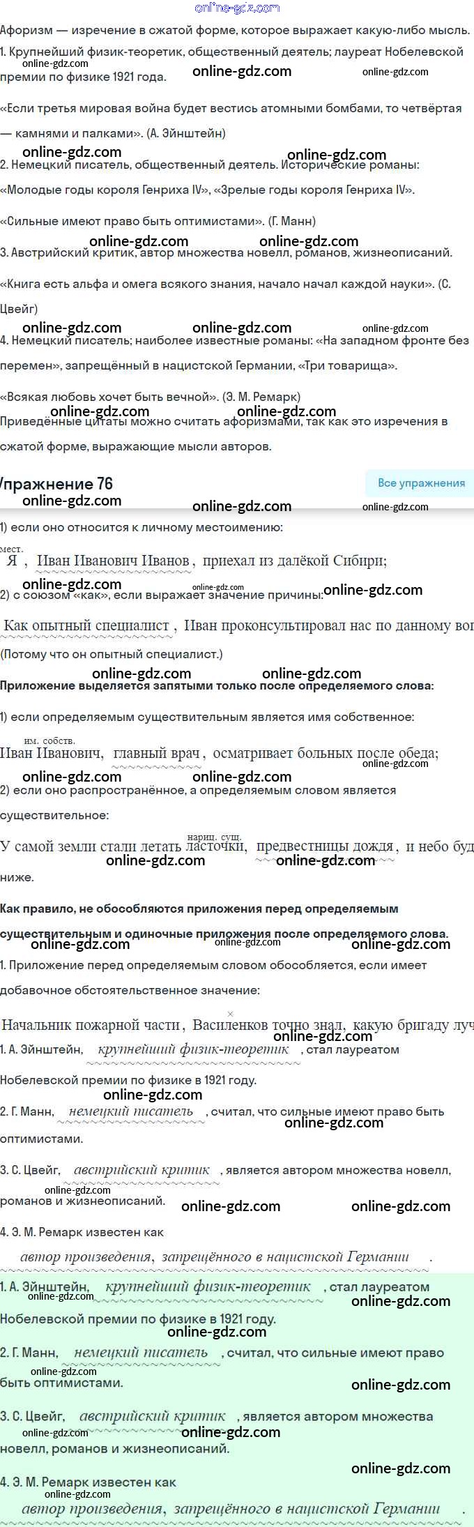 Готовые домашние задания по Русскому языку за 8 класс Учебник Шмелёв, Флоренская Алгоритм успеха 2019 - Глава 4. Русский язык — мировой язык 76