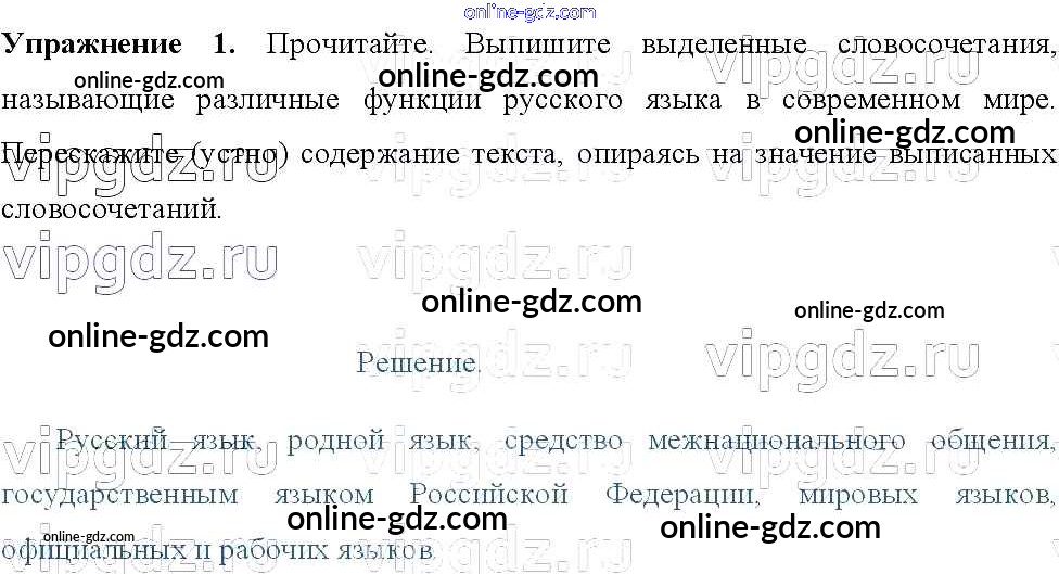 Готовые домашние задания по Русскому языку за 8 класс Учебник Тростенцова, Ладыженская 2014 - Упражнения 1