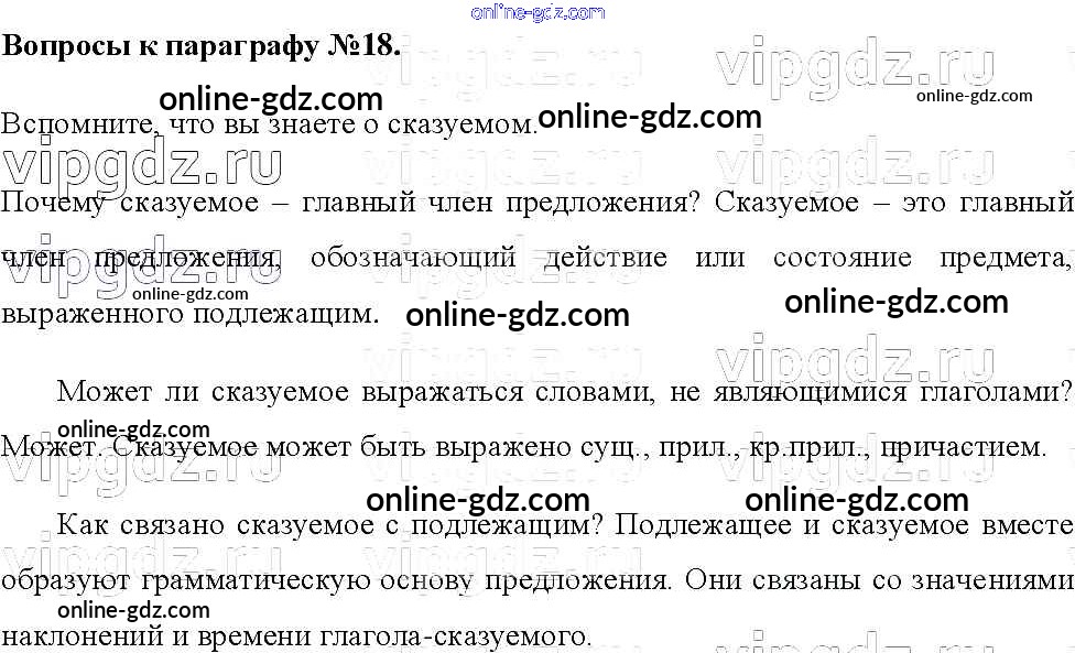 Готовые домашние задания по Русскому языку за 8 класс Учебник Тростенцова, Ладыженская 2014 - Вопросы к параграфам §18