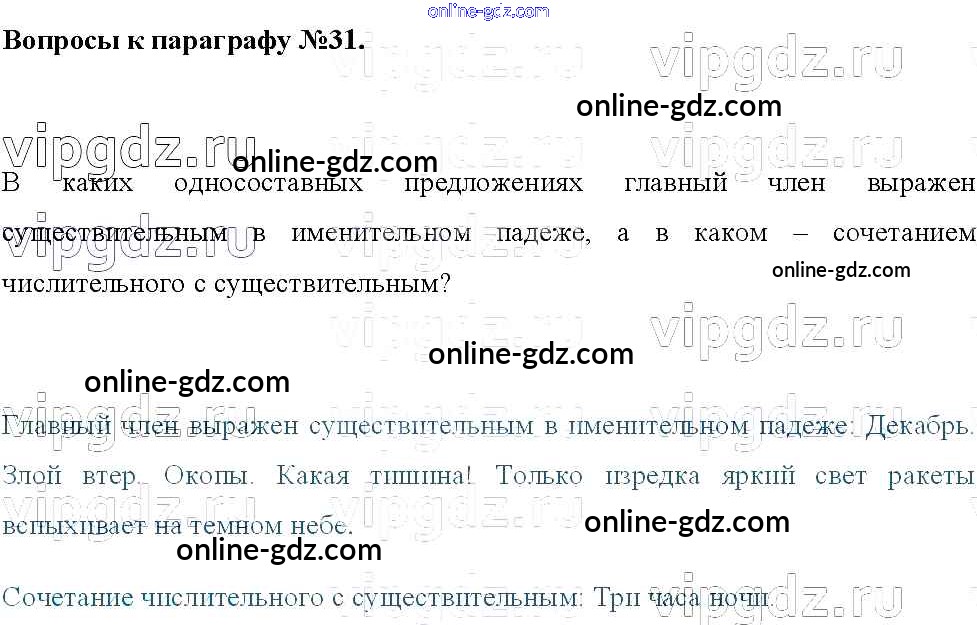 Готовые домашние задания по Русскому языку за 8 класс Учебник Тростенцова, Ладыженская 2014 - Вопросы к параграфам §31