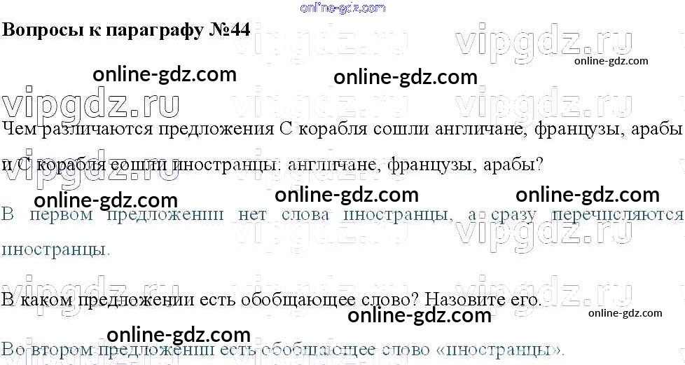 Готовые домашние задания по Русскому языку за 8 класс Учебник Тростенцова, Ладыженская 2014 - Вопросы к параграфам §44