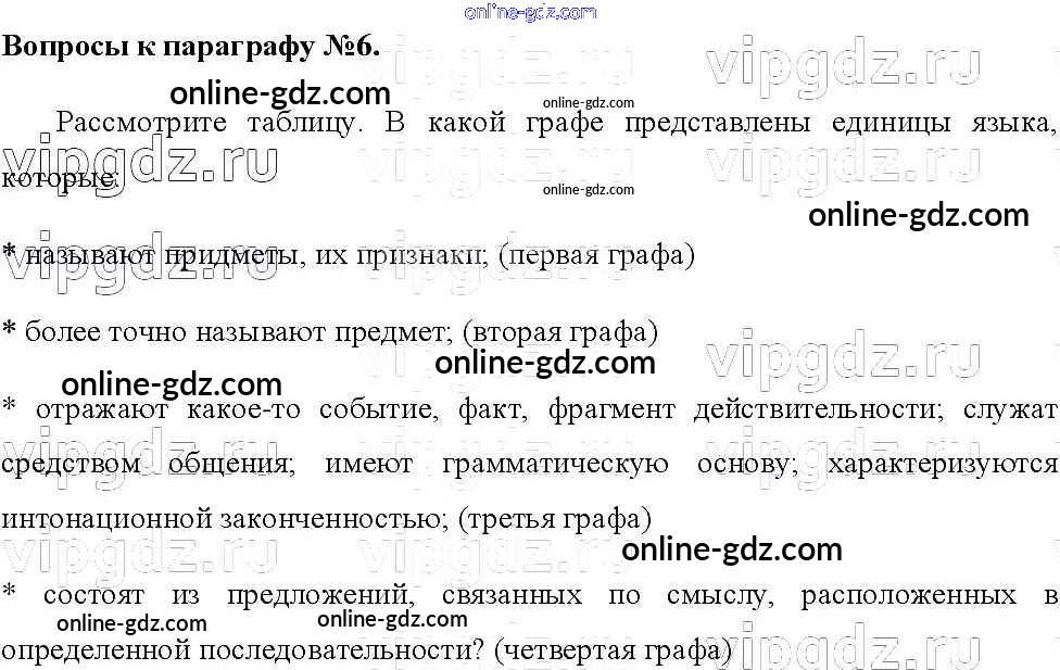 Готовые домашние задания по Русскому языку за 8 класс Учебник Тростенцова, Ладыженская 2014 - Вопросы к параграфам §6