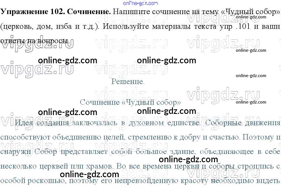 Готовые домашние задания по Русскому языку за 8 класс Учебник Тростенцова, Ладыженская 2014 - Упражнения 102
