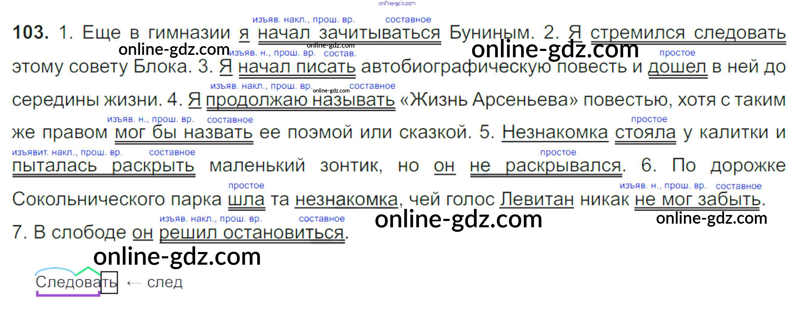 Готовые домашние задания по Русскому языку за 8 класс Учебник Тростенцова, Ладыженская 2014 - Упражнения 103