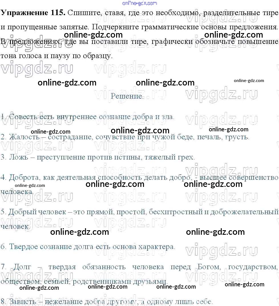 Готовые домашние задания по Русскому языку за 8 класс Учебник Тростенцова, Ладыженская 2014 - Упражнения 115