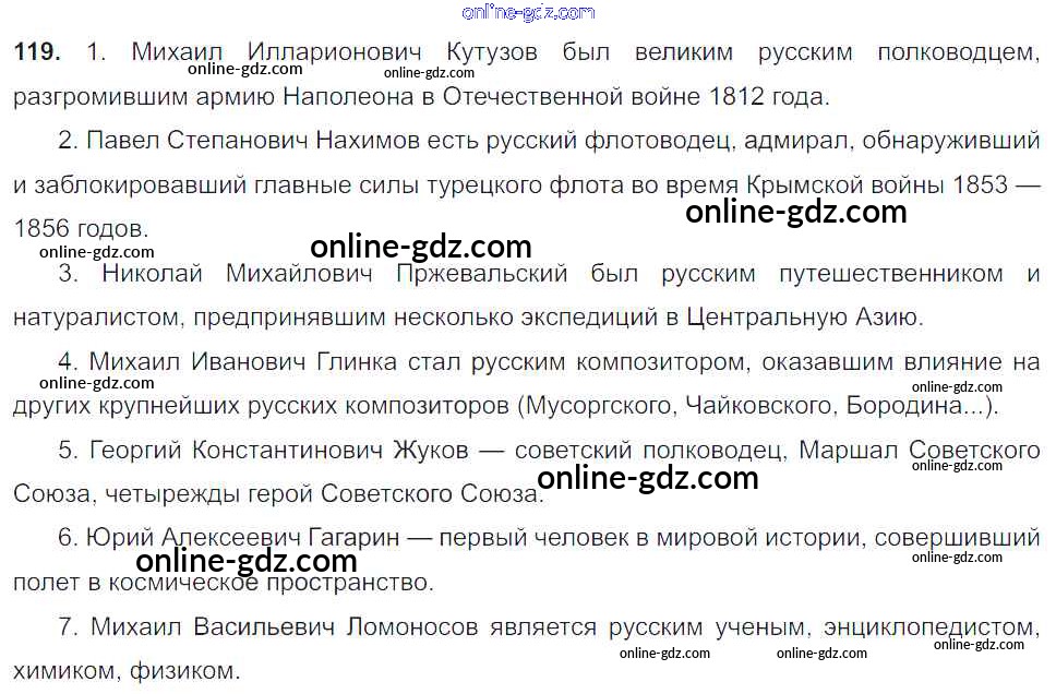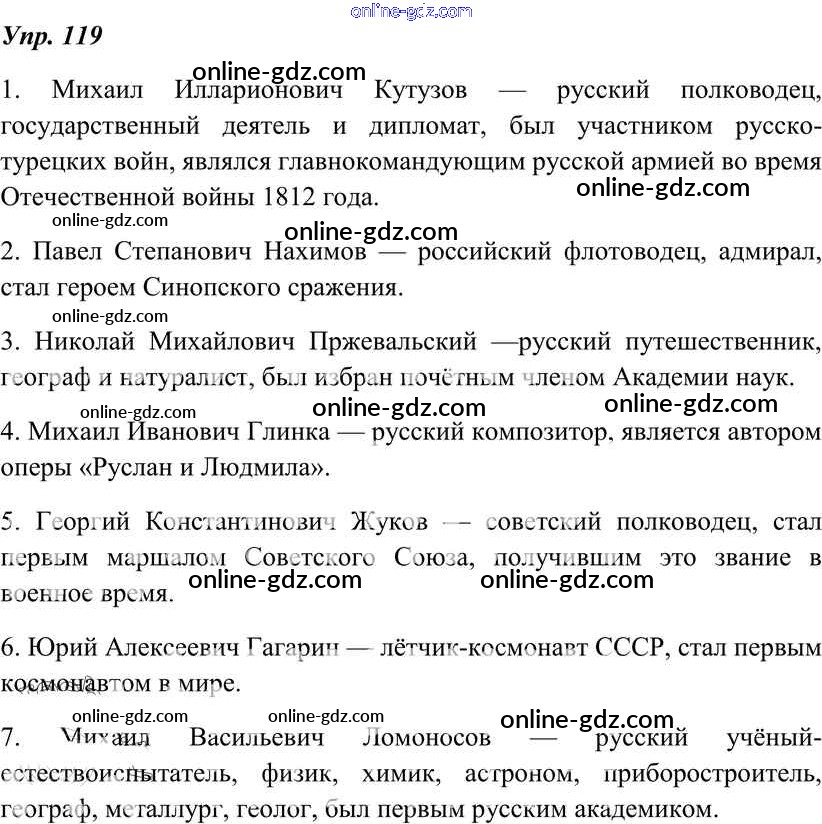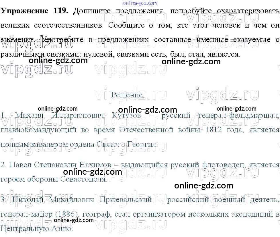 Готовые домашние задания по Русскому языку за 8 класс Учебник Тростенцова, Ладыженская 2014 - Упражнения 119