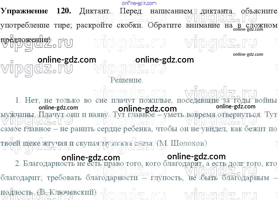 Готовые домашние задания по Русскому языку за 8 класс Учебник Тростенцова, Ладыженская 2014 - Упражнения 120