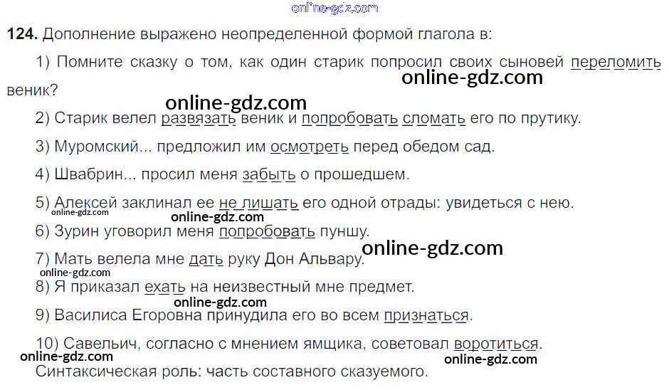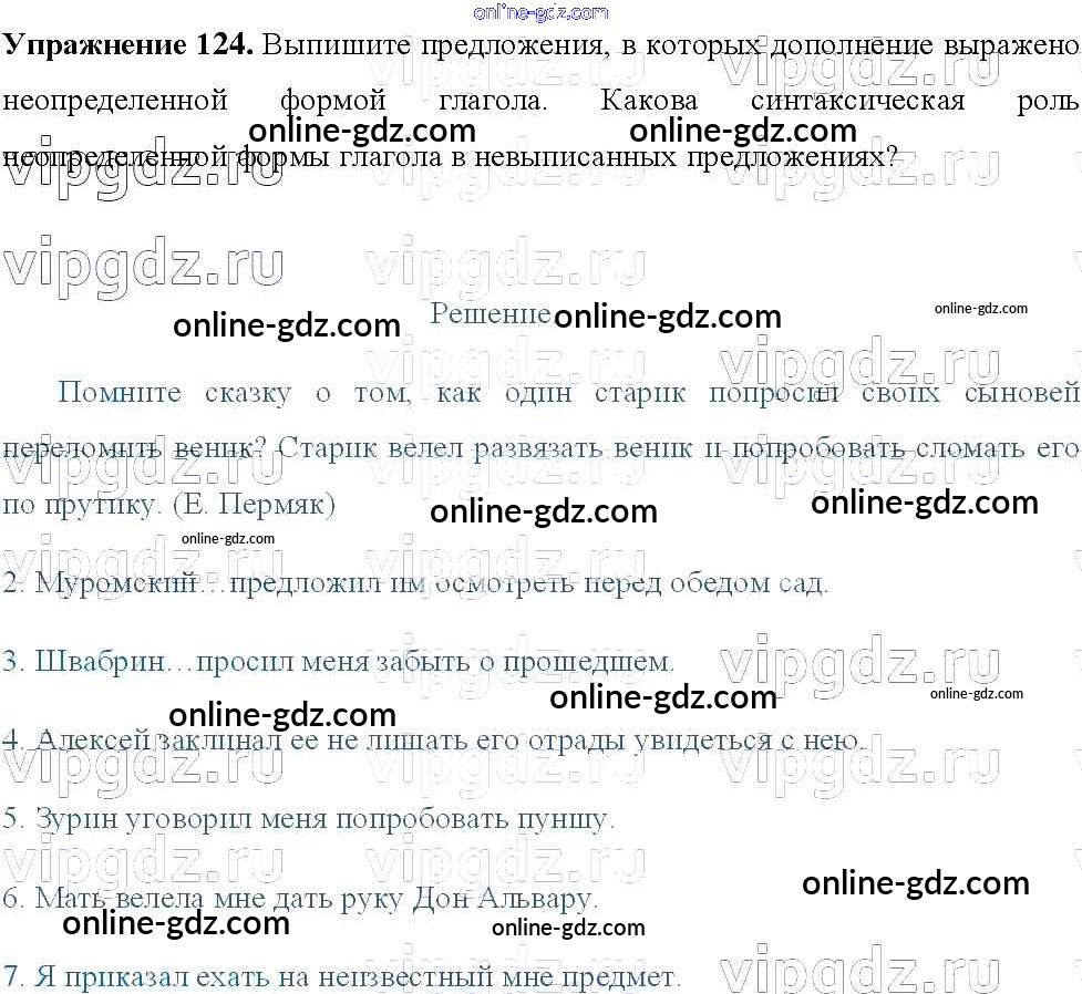 Готовые домашние задания по Русскому языку за 8 класс Учебник Тростенцова, Ладыженская 2014 - Упражнения 124