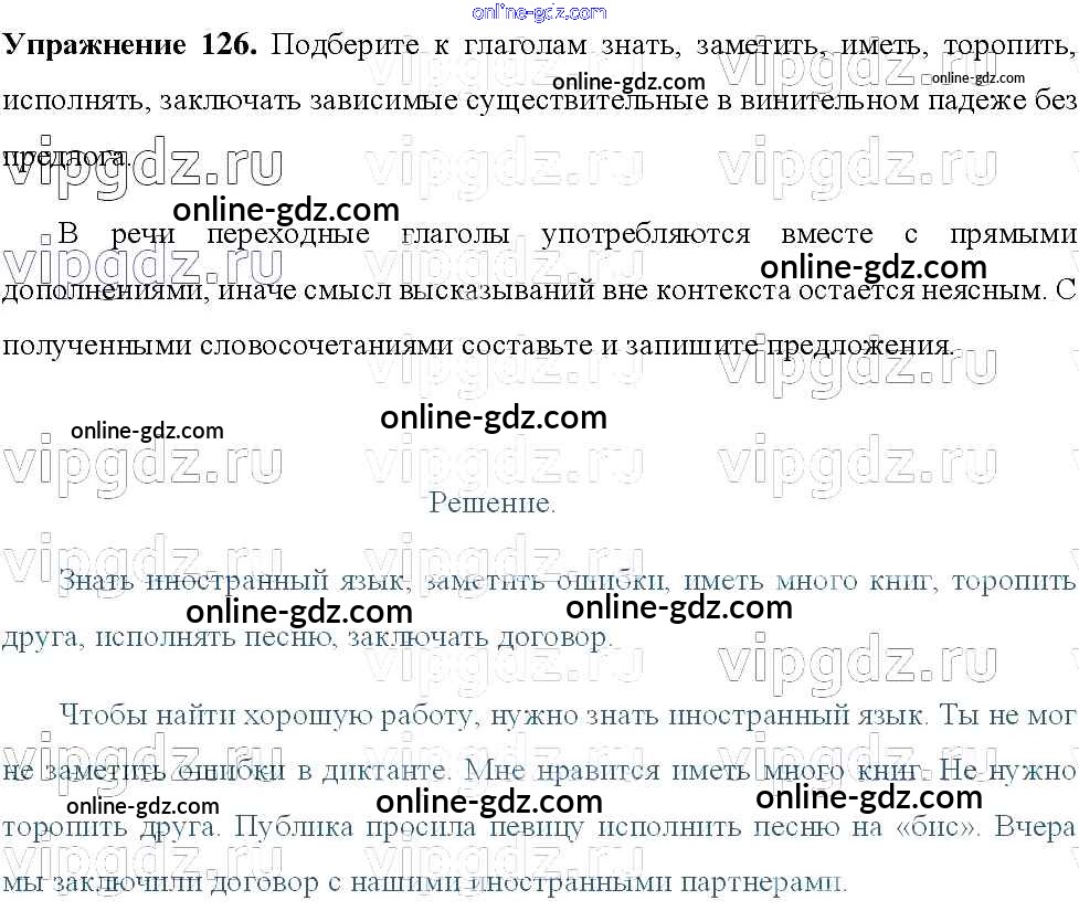 Готовые домашние задания по Русскому языку за 8 класс Учебник Тростенцова, Ладыженская 2014 - Упражнения 126