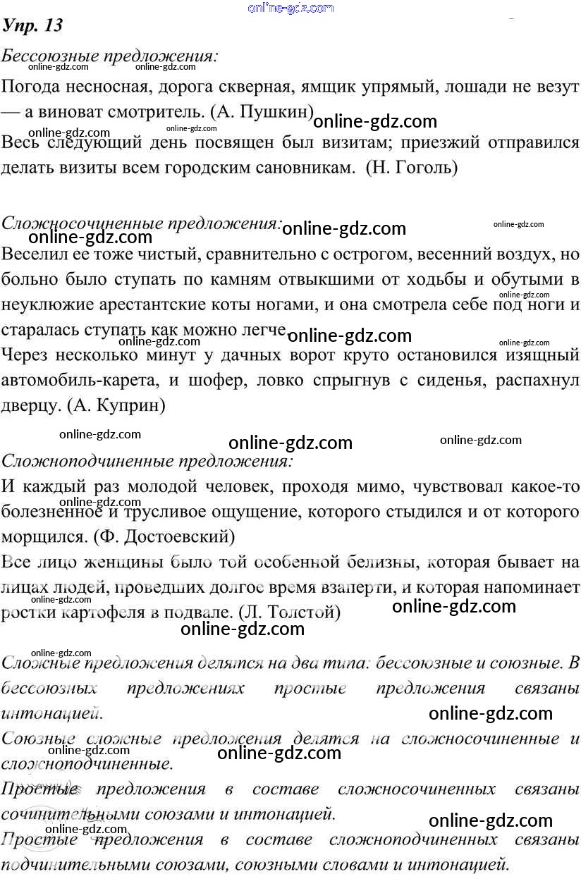 Готовые домашние задания по Русскому языку за 8 класс Учебник Тростенцова, Ладыженская 2014 - Упражнения 13