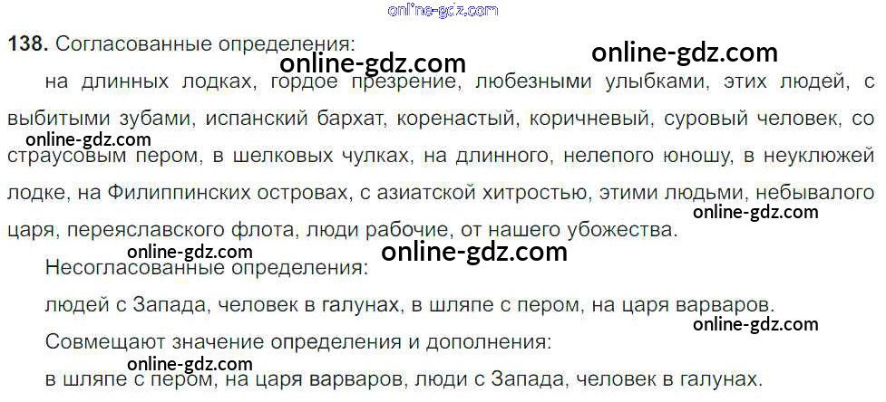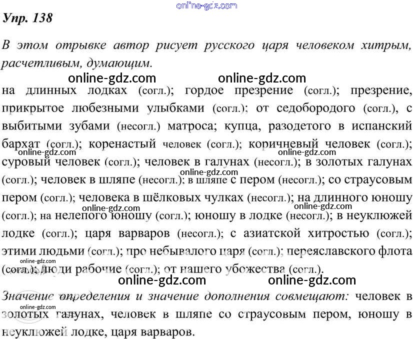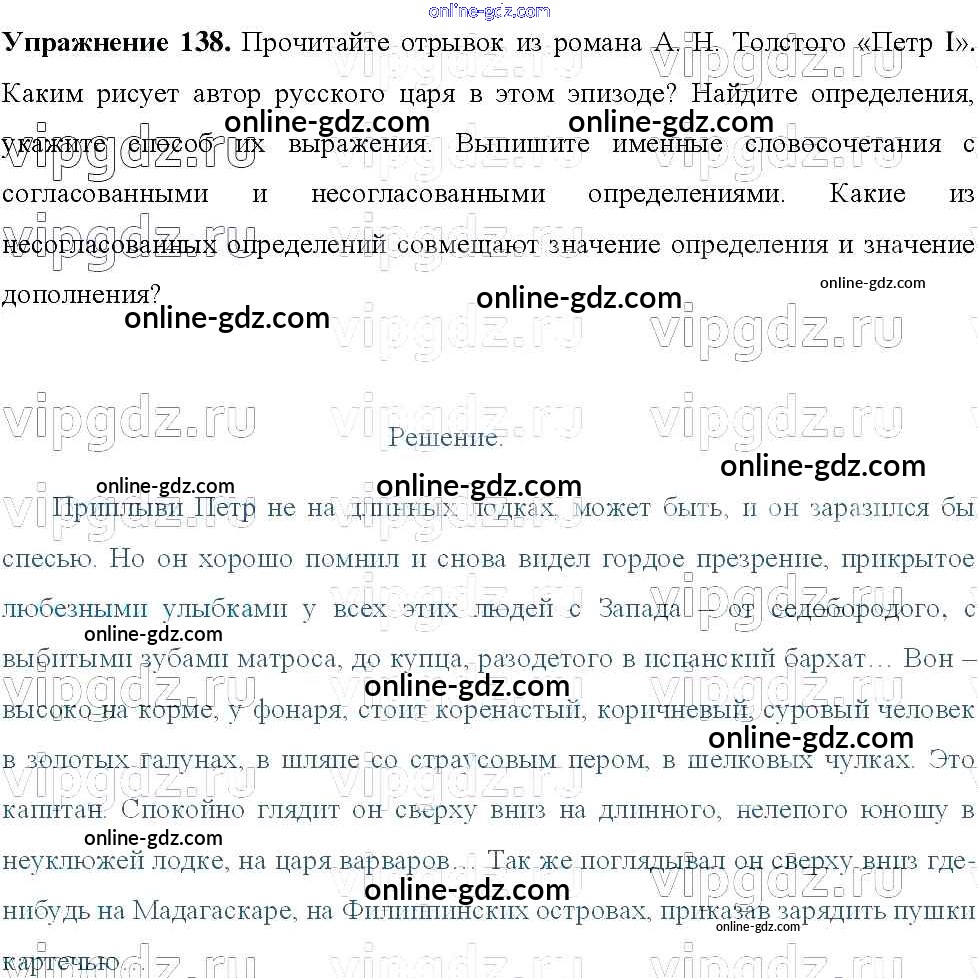 Готовые домашние задания по Русскому языку за 8 класс Учебник Тростенцова, Ладыженская 2014 - Упражнения 138