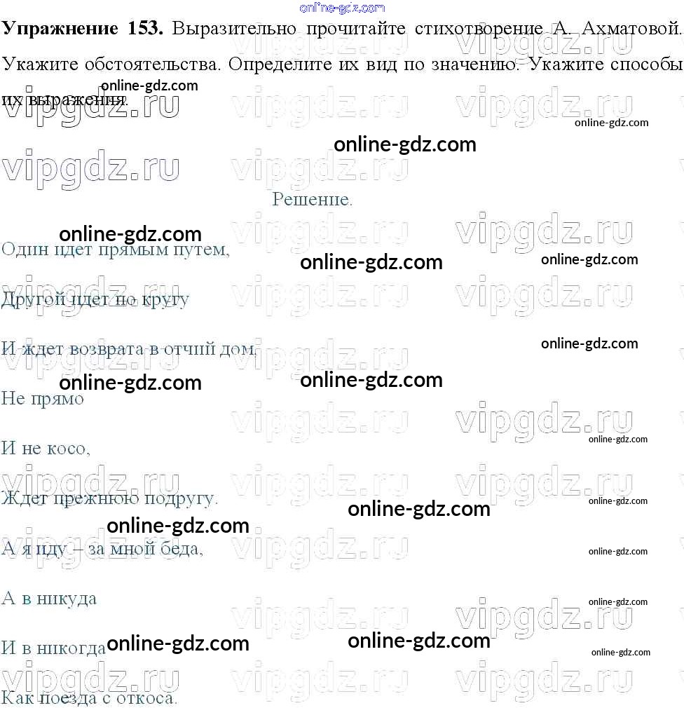 Готовые домашние задания по Русскому языку за 8 класс Учебник Тростенцова, Ладыженская 2014 - Упражнения 153