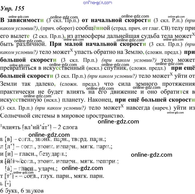 Готовые домашние задания по Русскому языку за 8 класс Учебник Тростенцова, Ладыженская 2014 - Упражнения 155