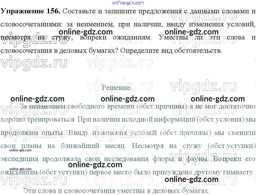Готовые домашние задания по Русскому языку за 8 класс Учебник Тростенцова, Ладыженская 2014 - Упражнения 156