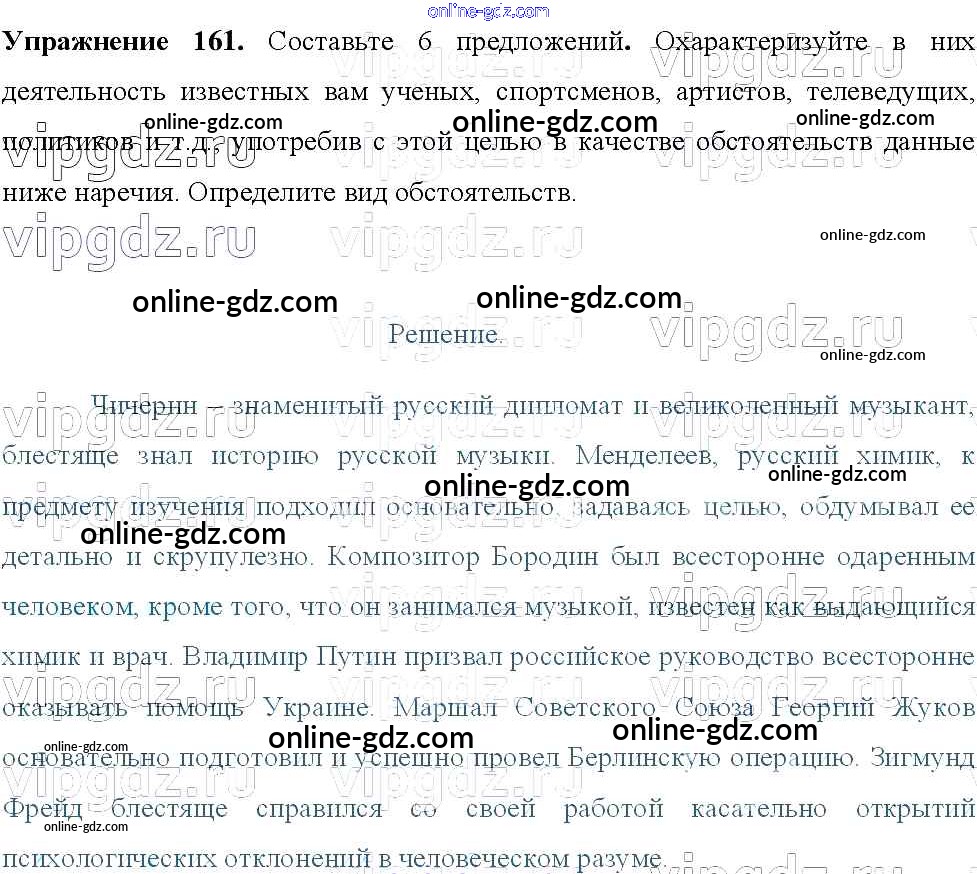 Готовые домашние задания по Русскому языку за 8 класс Учебник Тростенцова, Ладыженская 2014 - Упражнения 161