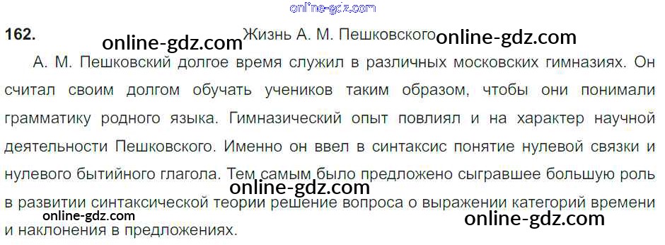 Готовые домашние задания по Русскому языку за 8 класс Учебник Тростенцова, Ладыженская 2014 - Упражнения 162
