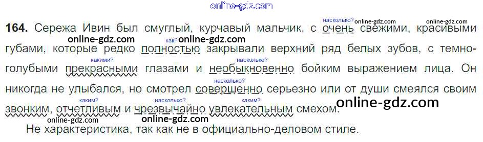 Готовые домашние задания по Русскому языку за 8 класс Учебник Тростенцова, Ладыженская 2014 - Упражнения 164