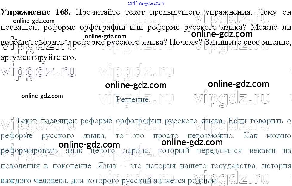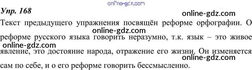 Готовые домашние задания по Русскому языку за 8 класс Учебник Тростенцова, Ладыженская 2014 - Упражнения 168