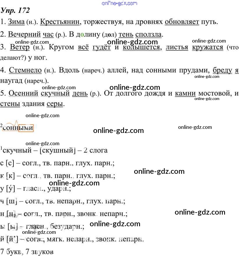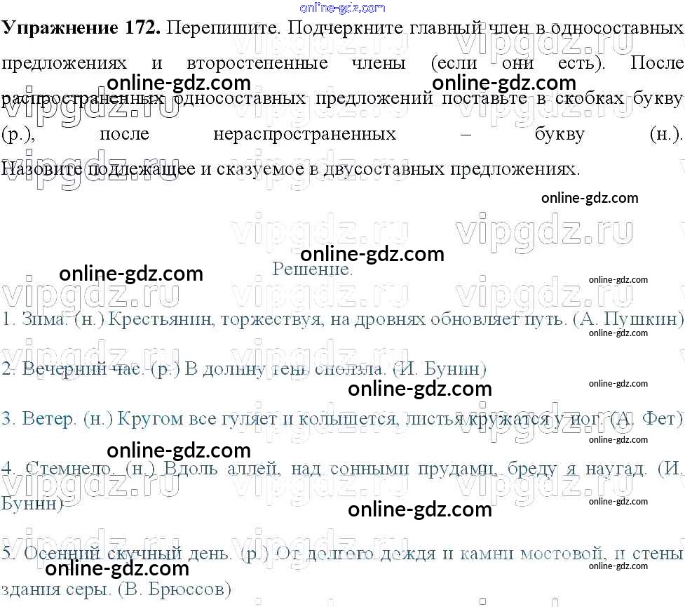 Готовые домашние задания по Русскому языку за 8 класс Учебник Тростенцова, Ладыженская 2014 - Упражнения 172