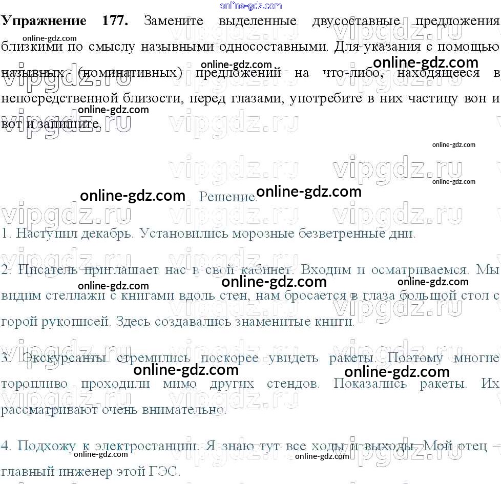 Готовые домашние задания по Русскому языку за 8 класс Учебник Тростенцова, Ладыженская 2014 - Упражнения 177