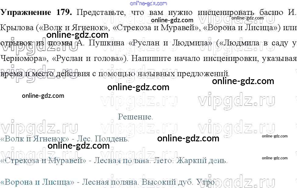 Готовые домашние задания по Русскому языку за 8 класс Учебник Тростенцова, Ладыженская 2014 - Упражнения 179