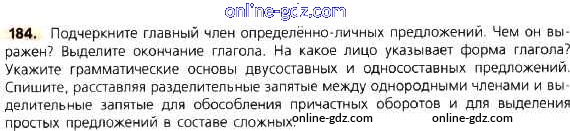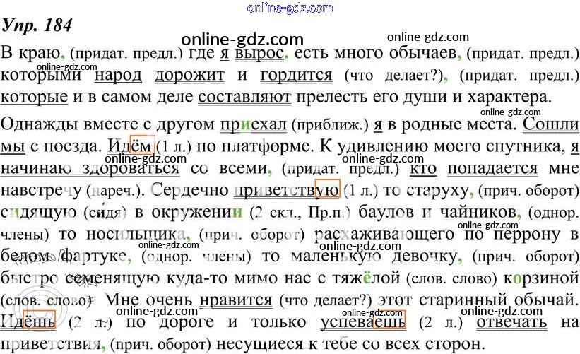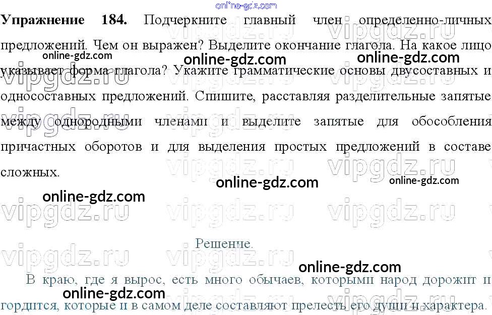 Готовые домашние задания по Русскому языку за 8 класс Учебник Тростенцова, Ладыженская 2014 - Упражнения 184