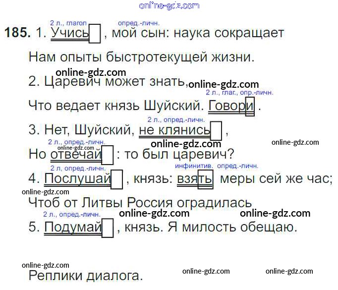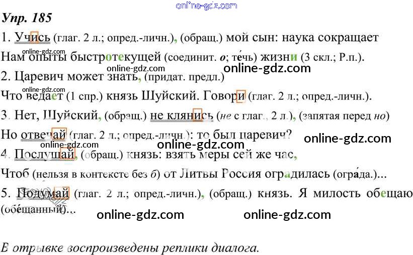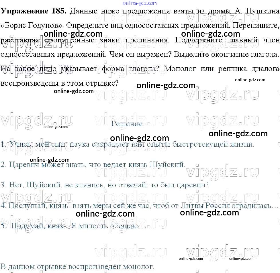 Готовые домашние задания по Русскому языку за 8 класс Учебник Тростенцова, Ладыженская 2014 - Упражнения 185