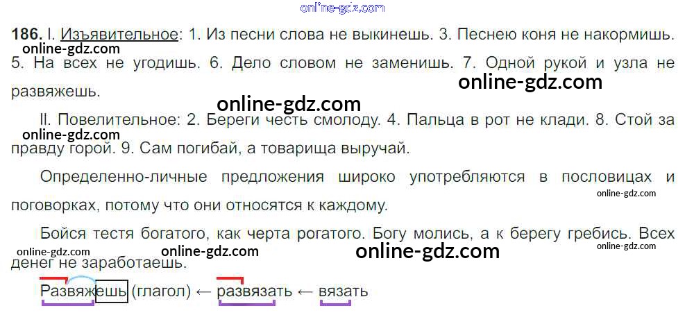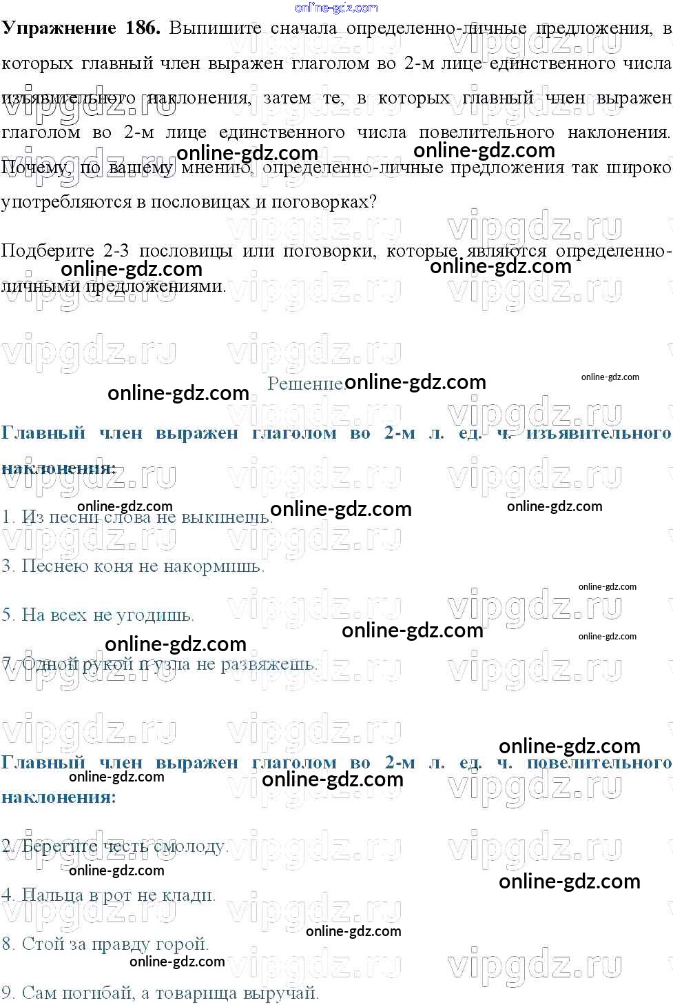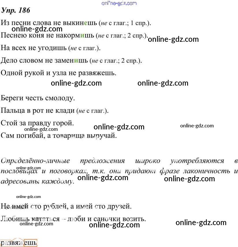Готовые домашние задания по Русскому языку за 8 класс Учебник Тростенцова, Ладыженская 2014 - Упражнения 186