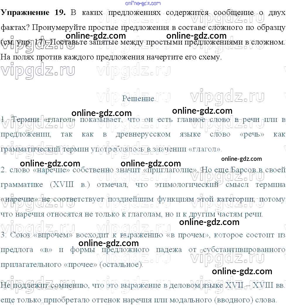 Готовые домашние задания по Русскому языку за 8 класс Учебник Тростенцова, Ладыженская 2014 - Упражнения 19