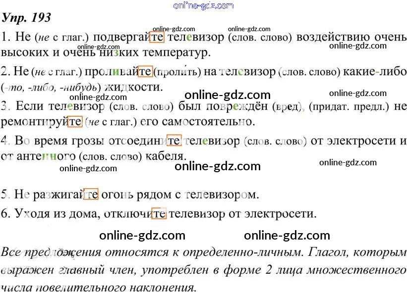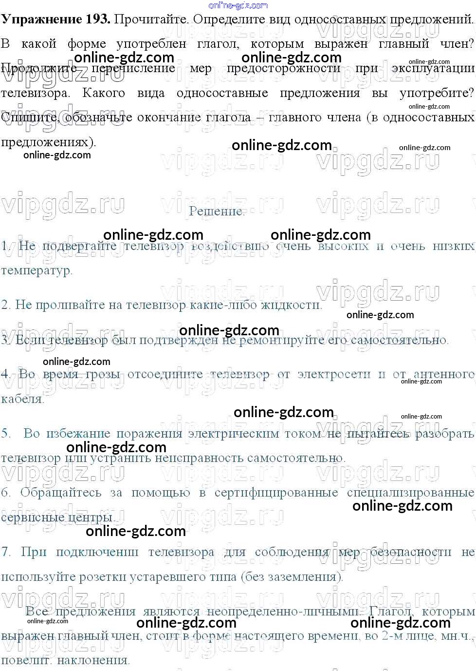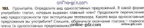 Готовые домашние задания по Русскому языку за 8 класс Учебник Тростенцова, Ладыженская 2014 - Упражнения 193