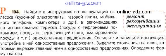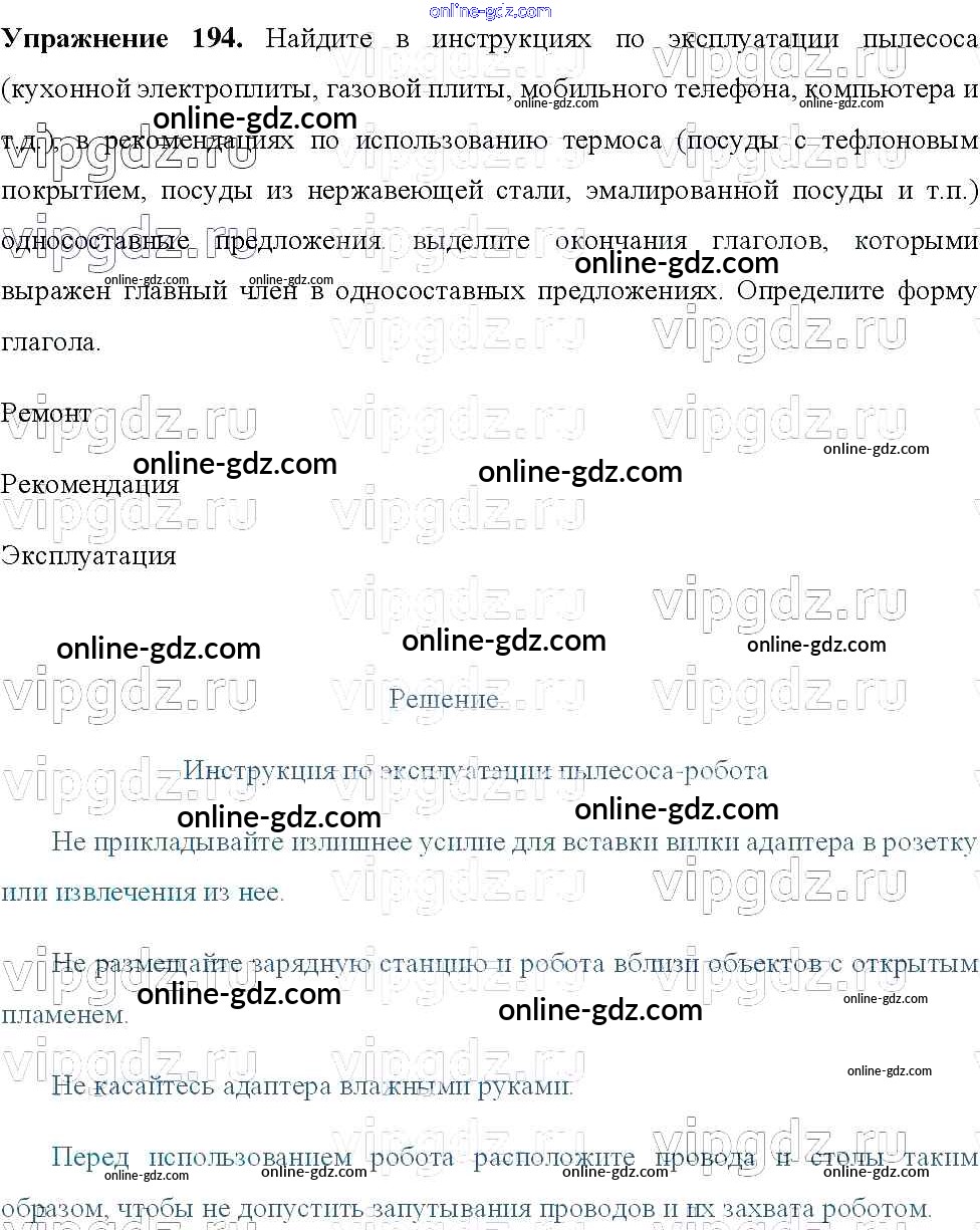 Готовые домашние задания по Русскому языку за 8 класс Учебник Тростенцова, Ладыженская 2014 - Упражнения 194