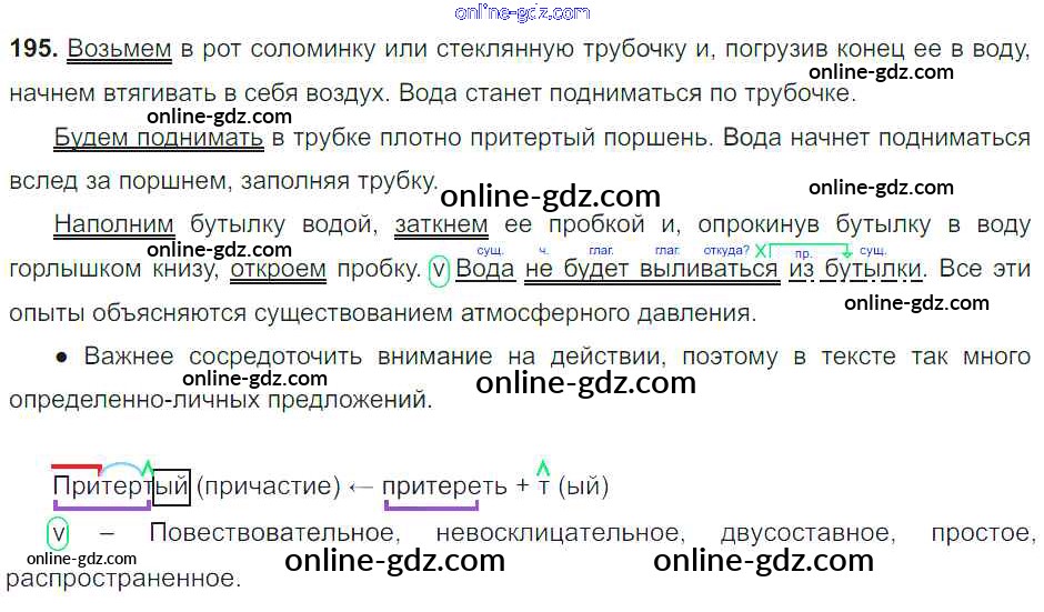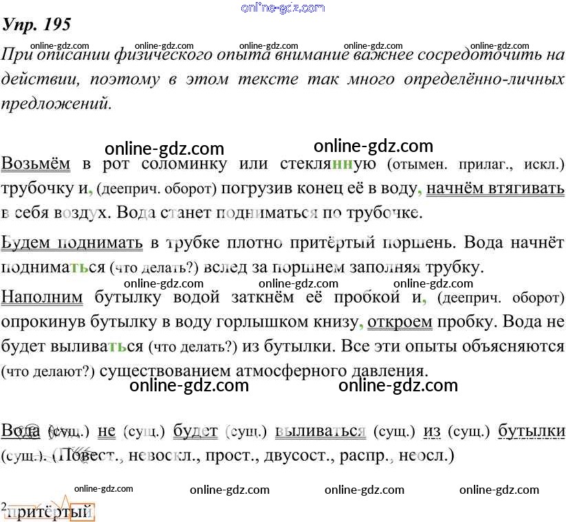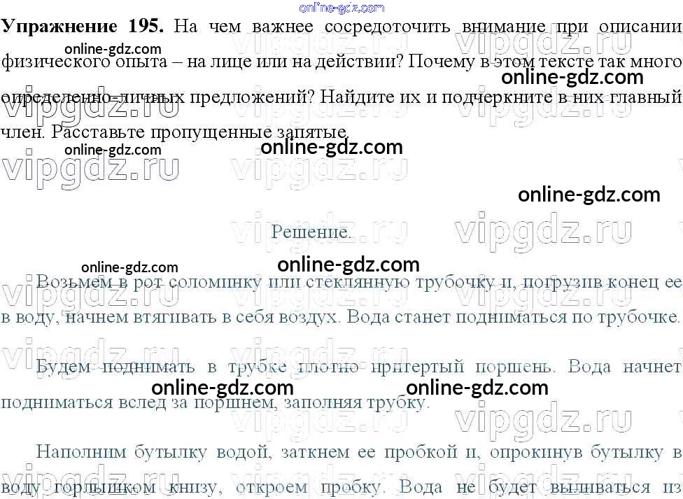 Готовые домашние задания по Русскому языку за 8 класс Учебник Тростенцова, Ладыженская 2014 - Упражнения 195