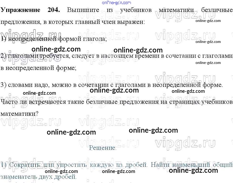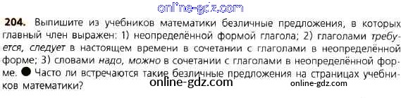 Готовые домашние задания по Русскому языку за 8 класс Учебник Тростенцова, Ладыженская 2014 - Упражнения 204