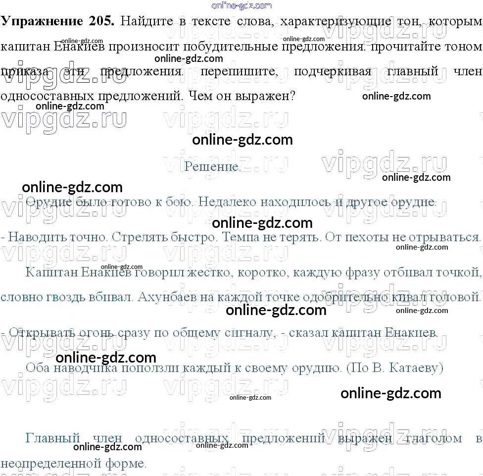Готовые домашние задания по Русскому языку за 8 класс Учебник Тростенцова, Ладыженская 2014 - Упражнения 205