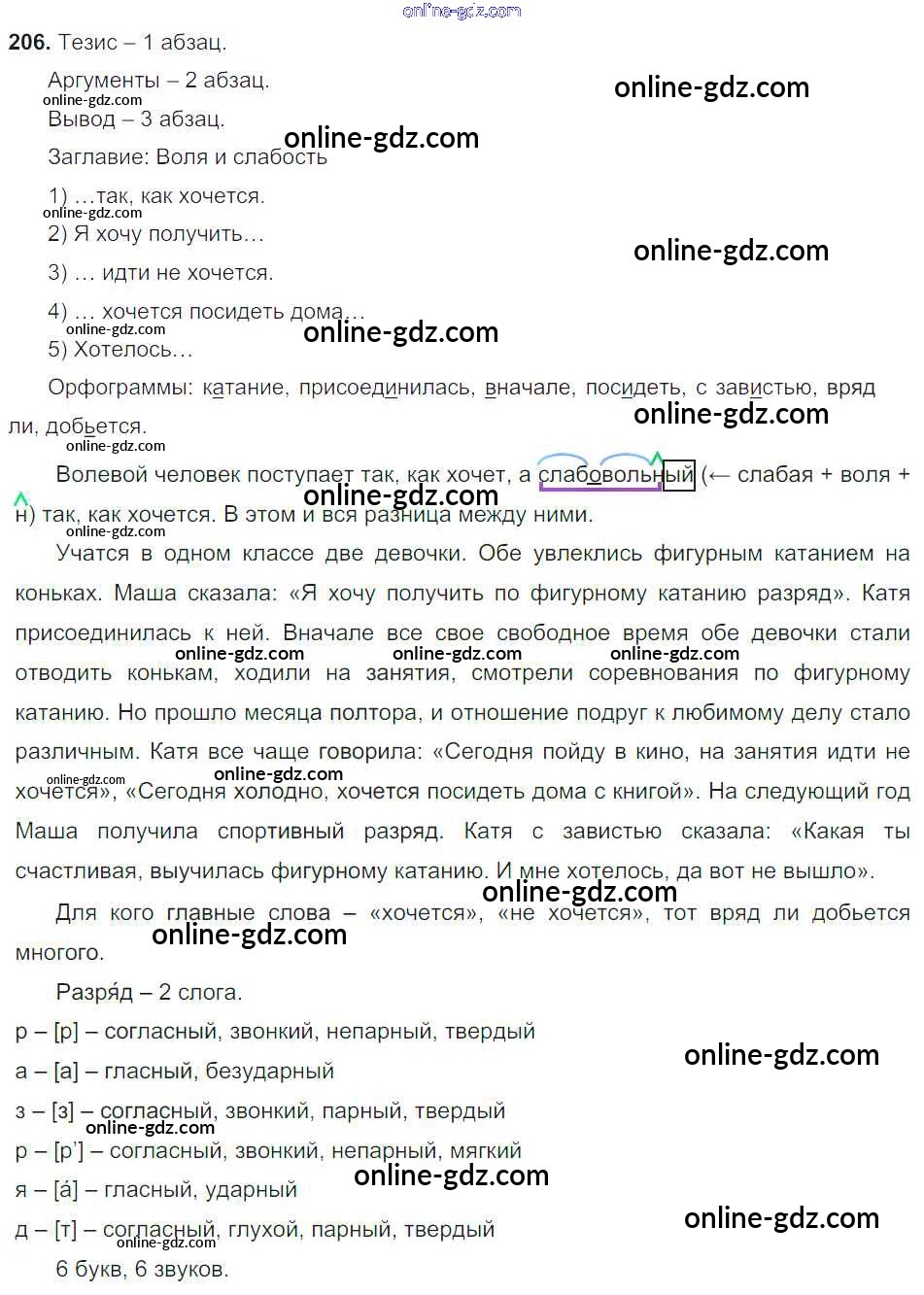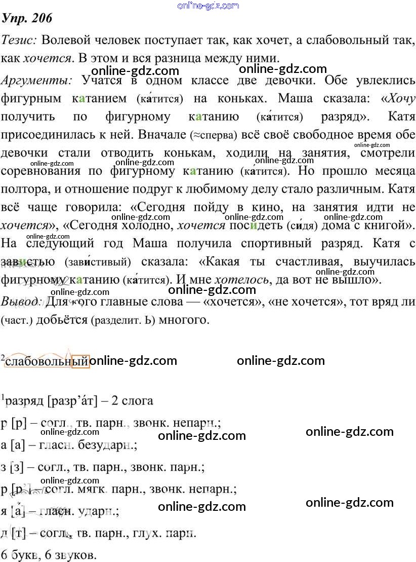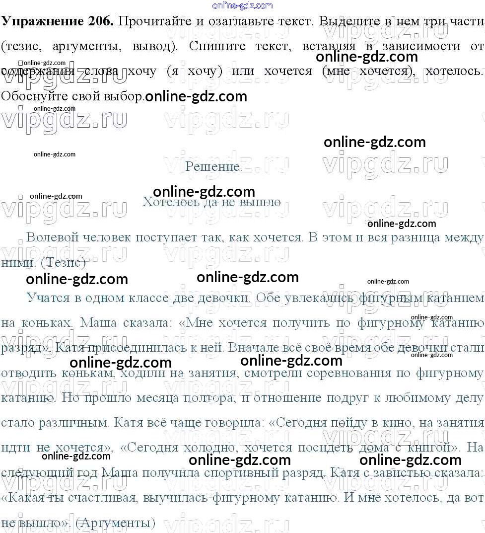 Готовые домашние задания по Русскому языку за 8 класс Учебник Тростенцова, Ладыженская 2014 - Упражнения 206